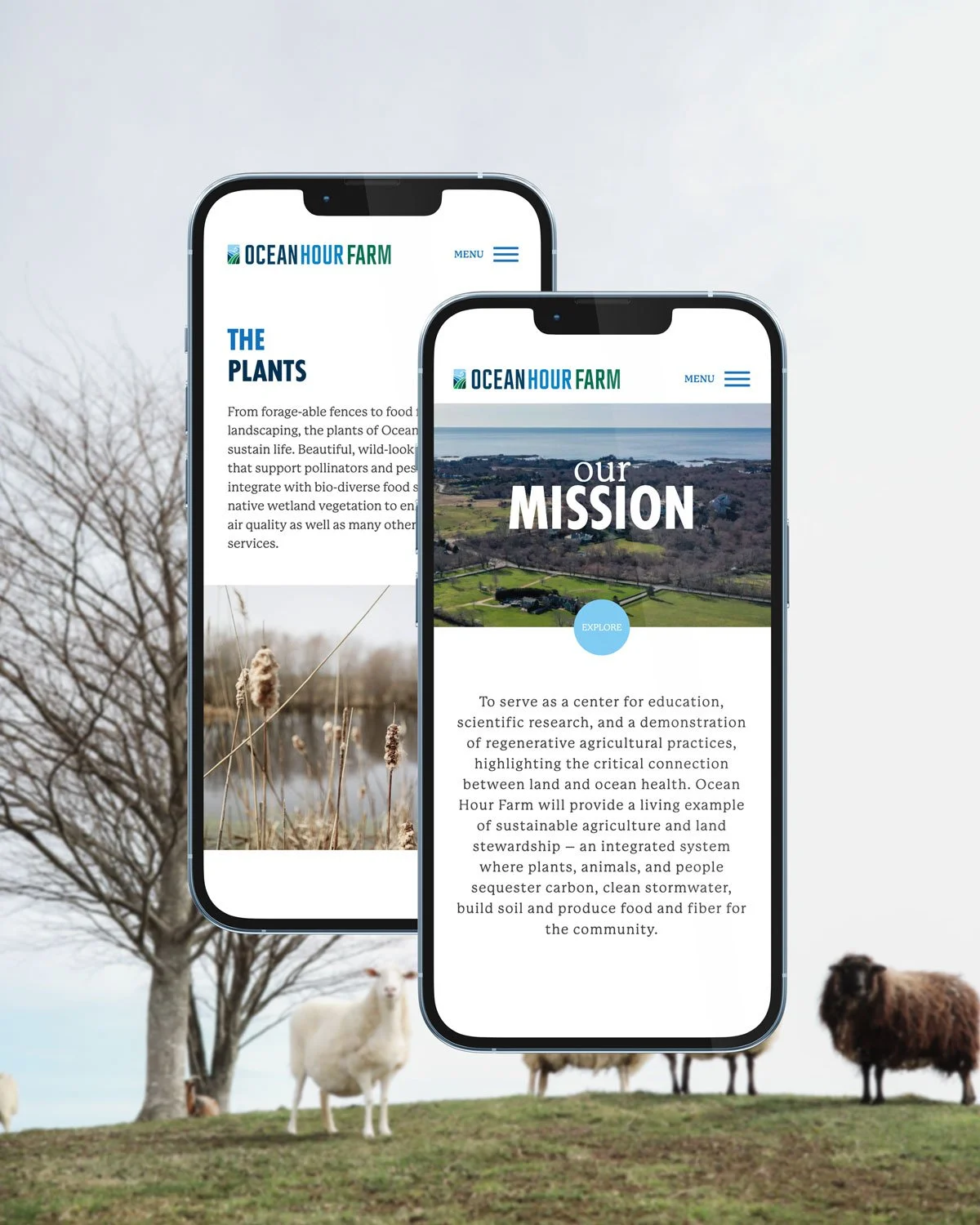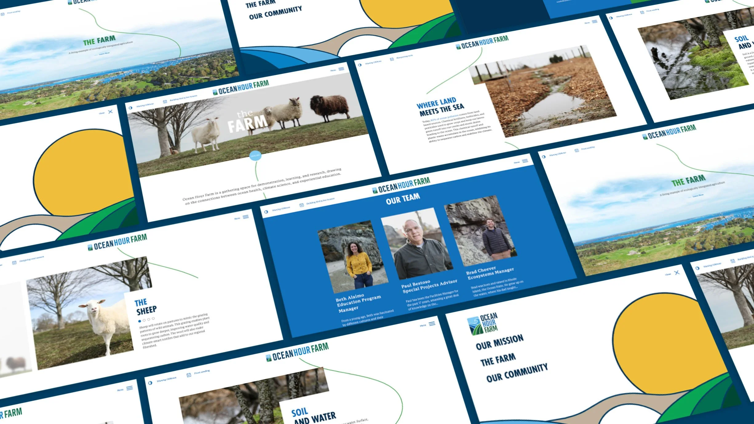 Ocean Hour Farm (OHF) is a local center for education, scientific research, and demonstration of regenerative agricultural practices. The client wanted a website that was approachable, friendly and would be able to grow with the organization. OHF’s primary mission is to explore the relationship between land and ocean health through sustainable farming practices. In order to tell this story, we created simple, bold illustrations inspired by OHF’s logo (logo design by Van Orton). A green vine guides the user through the page as they scroll, bringing a kinetic energy to the site while also implying that the organization is constantly growing and adapting, just like the planet they are working to restore.